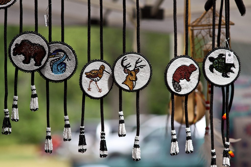 The specific techniques, materials, and motifs used in beadwork vary across Indigenous cultures. Before European contact, Indigenous people made beads from natural materials such as wood, shells, bones, and teeth, which were used to decorate clothing, tools, pets, ceremonial items, and household objects. European contact introduced glass beads, which became a valuable trade good for both Indigenous people and Europeans, and were rapidly integrated into existing Indigenous beadwork traditions.